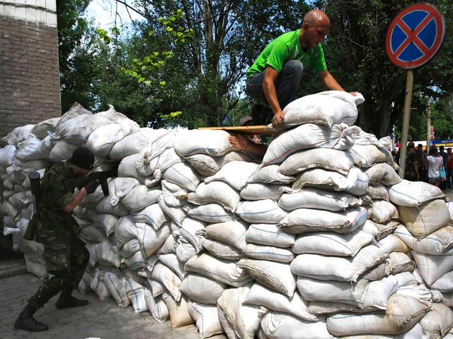 В городе идет строительство баррикад - мятежники намерены сопротивляться украинским военным, ранее вытеснившим их из здания аэропорта.