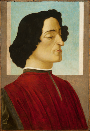 Алессандро Боттичелли. Портрет Джулиано де Медичи. Около 1478–1480 Но раз уж столько было про Мадонн, есть тут еще одна странная, почти страшная (но в нее всматриваешься), вещь феррарца Козимо Туры. Феррара, где д'Эсте помнили рыцарские идеалы и одновременно интересовались астрологией, вообще была особым, будто самим на себя замкнутым миром. А Тура, сделавший своих Мадонну и младенца, похожего на маленького старца, был придворным мастером. Про него Муратов писал, что «линия Туры запутанная, сложная, вьющаяся, разбивающая все плоскости на отдельные узоры».