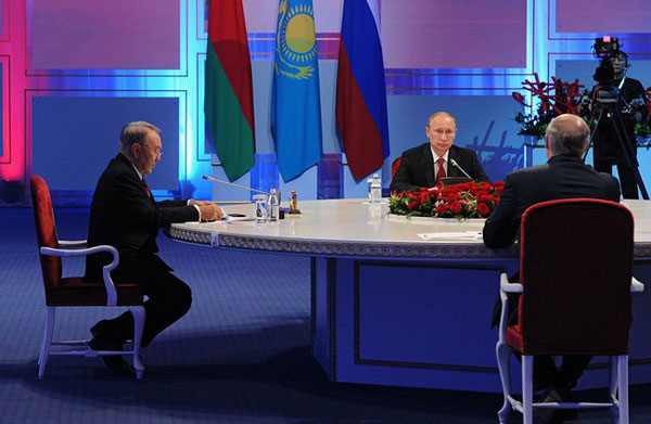 Заседание Высшего Евразийского экономического совета Фото: kremlin.ru 29 мая в Астане президент России Владимир Путин, а также глава Казахстана Нурсултан Назарбаев и глава Белоруссии Александр Лукашенко подписали исторический договор о создании Евразийского экономического союза — новом этапе интеграции трех государств.