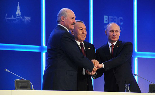 Президент РФ Владимира Путин, казахстанский лидер Нурсултан Назарбаев и глава Белоруссии Александр Лукашенко подписали соглашение о создании Евразийского экономического сообщества. Этот документ был утвержден на Высшем евразийском экономическом совете в Астане и вступит в силу с 1 января 2015 года. Создание этой структуры впоследствии может вывести стран-участниц на куда более высокий уровень интеграции. В тексте договора указывается, что Казахстан, РФ и Белоруссия ныне обязуются обеспечивать свободное перемещение товаров, услуг, капиталов и рабочей силы в рамках союза.