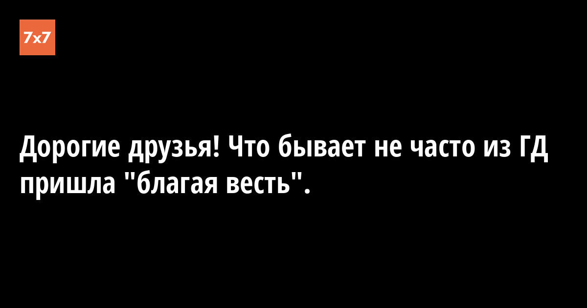 Дорогие друзья! Что бывает не часто из ГД пришла "благая весть".