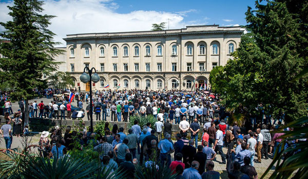 Митинг оппозиции в Сухуми. Фото: Нина Зотина/yuga.ru В четверг, 29 мая, парламент Абхазии обратился к президенту Александру Анквабу с предложением уйти с поста добровольно, обращение не имеет юридической силы и ориентировано исключительно на моральное воздействие. Премьер-министру республики, Леониду Лакербае парламент объявил вотум недоверия.