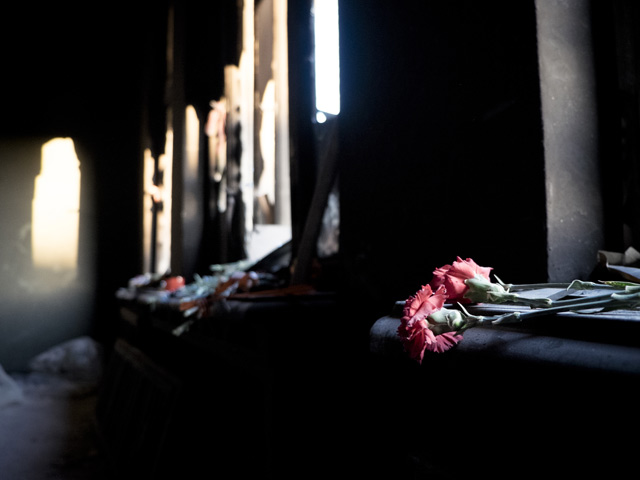 В здании, где кроме вооруженных активистов находились и мирные участники протеста, начался пожар: по предварительным данным, произошел поджог, но кем он был совершен, не известно. Не исключено, что пожар возник сразу в нескольких частях здания. Многие погибли от отравления неизвестным газом.