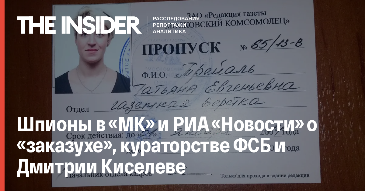 Шпионы в «МК» и РИА «Новости» о «заказухе», кураторстве ФСБ и Дмитрии Киселеве