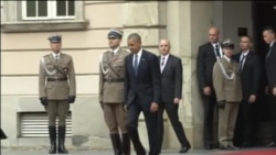 Ранее Обама встретился в Варшаве с избранным президентом Украины Петром Порошенко. Как передает корреспондент Радио Свобода, политики обсудили возможные пути мирного урегулирования ситуации в восточной части Украины, экономической помощи этой стране и уменьшение ее зависимости от российских энергоносителей. Барак Обама заявил также, что выбор Петра Порошенко на пост президента Украины был "мудрым выбором", и пожелал ему успехов в "трудный для страны переходный период".