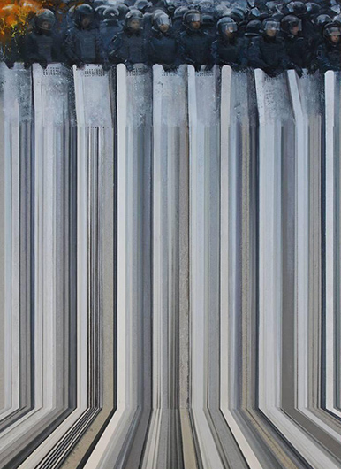 Если приехать сегодня в Киев, Харьков или Одессу и пройтись по галереям — неизбежно попадаешь на несколько больших подборок про актуальную политику. Обязательно увидишь работы про «Беркут» и милицейское насилие, про Западную и Восточную Украину, про власть и Майдан. И это будут не два-три художника, а довольно большой пласт разных людей и разных работ.