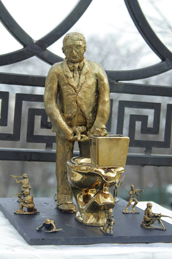 «В реальности я не самый активный участник Майдана — и не так много дней и ночей провела на киевском и одесском Майданах (я еще и мама маленького мальчика). Для меня мой личный Майдан начался летом 2013 года, когда я начала делать “Памятник писающему президенту”. Мне было важно высказать презрение нашему тогдашнему президенту, показать, что он всего лишь жалкий и трусливый человечишко. Меня распирало от негодования и возмущения.