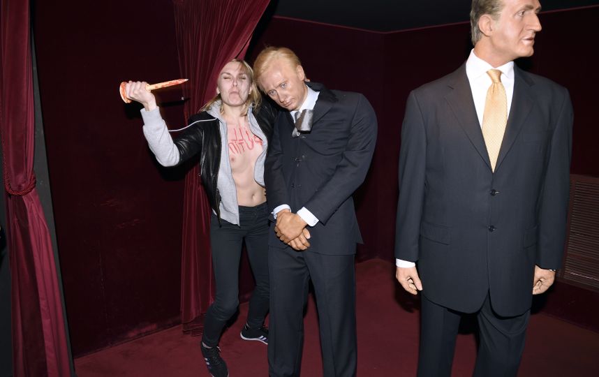 Как передает корреспондент Радио Свобода Наталья Каневская, войдя в музей, активистка подошла к стоящим вместе фигурам нескольких мировых лидеров, сняла с себя блузку и стала наносить восковому российскому президенту удары деревянным колышком.