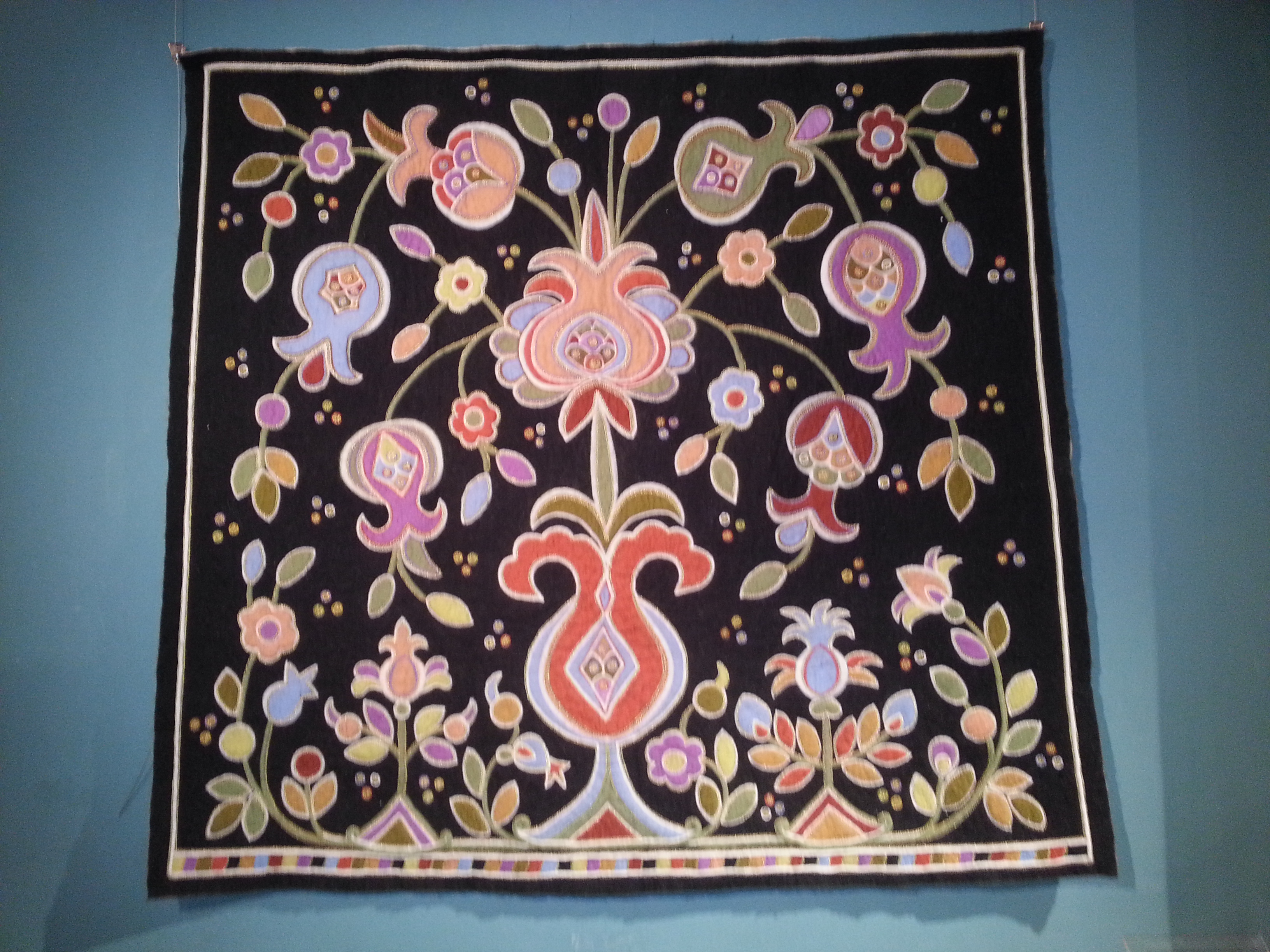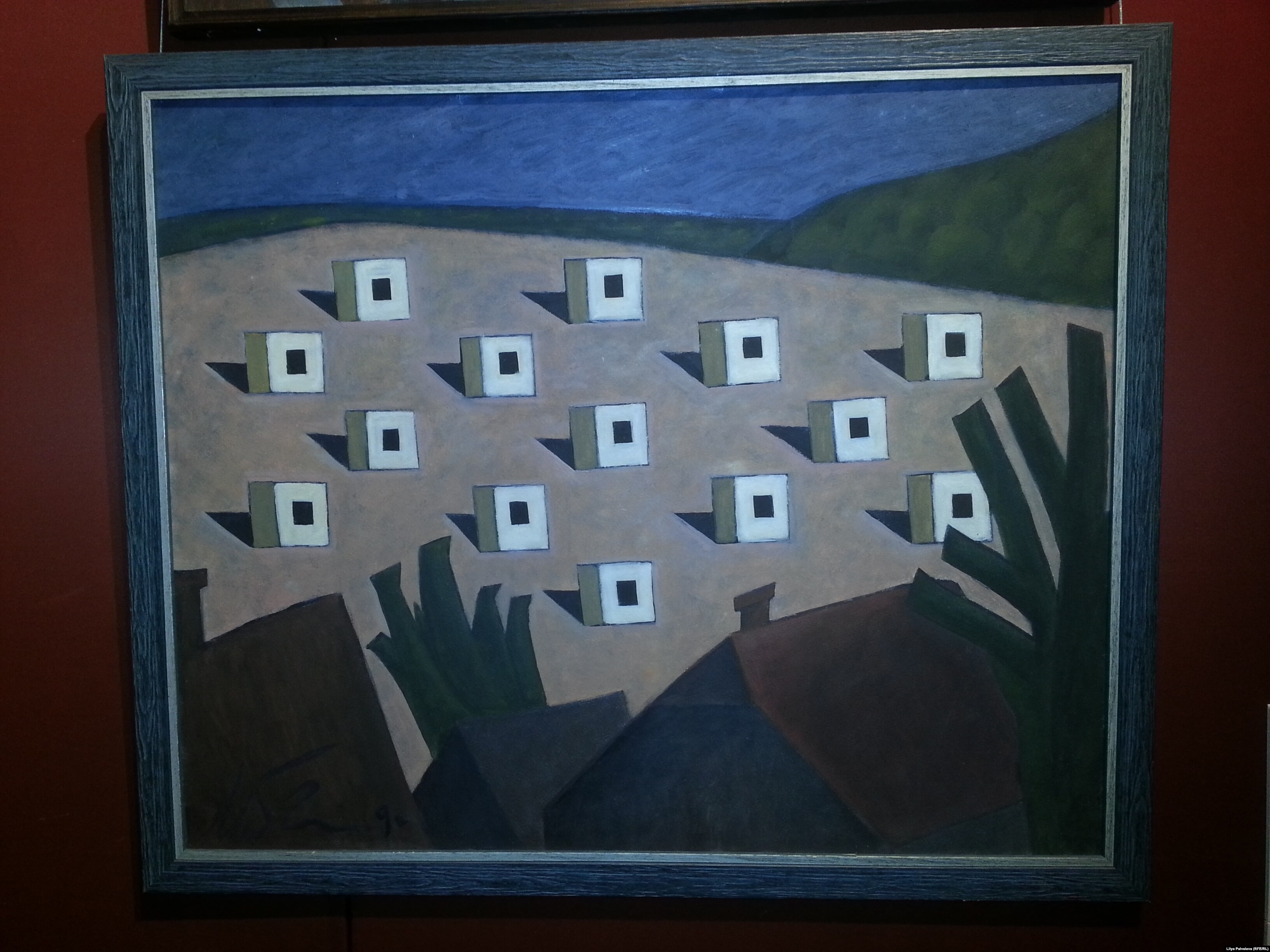 Большая часть экспонатов выставки "Хайтарма. Искусство крымских татар" – это картины Мамута Чурлу либо произведения декоративно-прикладного искусства, выполненные по его эскизам мастерами из объединения "Чатыр-Даг". Родившийся в Фергане и живущий с 1989 года в Крыму художник о нынешних властях говорить отказывается, да и прежние не жалует: