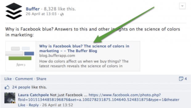 Таким образом, делая акцент на разном контенте — ссылке или изображении — Buffer удваивает, а иногда и утраивает вовлечение своей аудитории.
