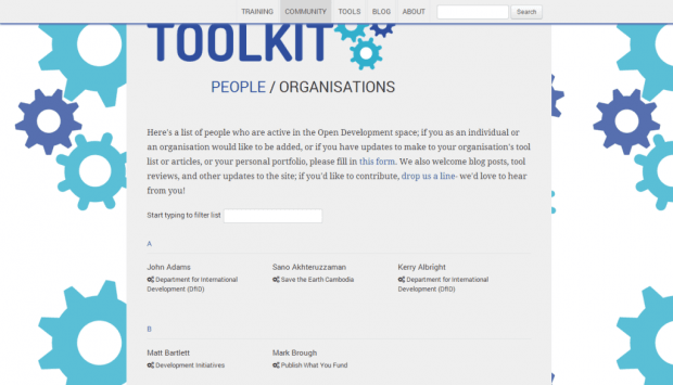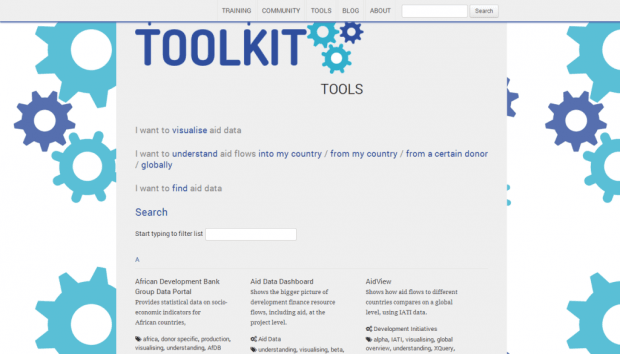 Проект Open Development Toolkit — это централизованный хаб по данным о международной помощи развивающимся странам, включающий в себя различные инструменты и обучающие материалы, цель которых — помогать использовать эти данные. Инструментарий фокусируется на данных помощи развивающимся странам, но в ближайшее время планируется включить и другие типы данных, такие как данные о выборах и образовании.