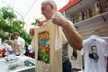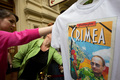 В московском торговом центре ГУМ началась продажа футболок с изображением Владимира Путина. Как сообщает корреспондент "Граней", товар пользуется ажиотажным спросом. Люди стоят больше часа, чтобы приобрести футболки по цене 1200 рублей и чехлы для телефонов по 600 рублей.