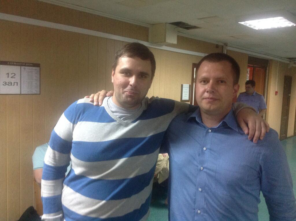 Константин Янкаускас (слева) и Николай Ляскин (справа) 11 июня в Пресненском районном суде Москвы. Янкаускаса в этот день отправили под домашний арест /фото: штаб Зюзина/twitter.com
