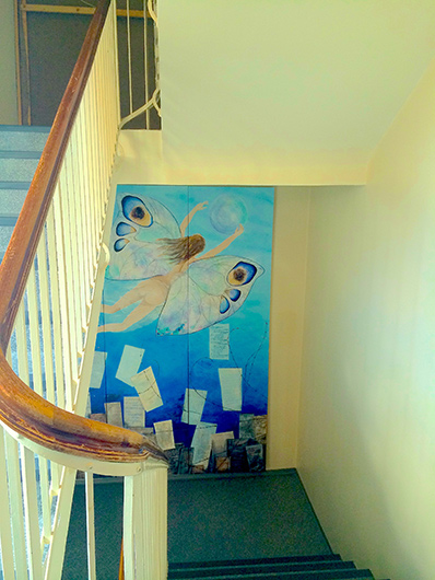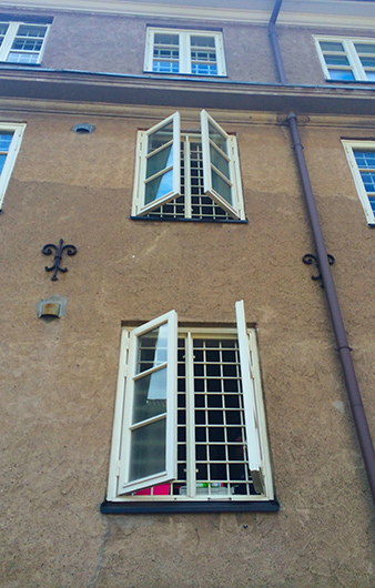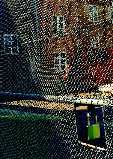 После этого я недолго говорю с заключенной, иду по коридорам, рассматривая рисунки известных норвежских художников, делавших картины специально для этой тюрьмы. Я выхожу в тюремный двор, где большая белая стена покрыта словами «дом», «ответственность», «семья», на фоне этого небольшой пруд и волейбольная сетка. Идет дождь.