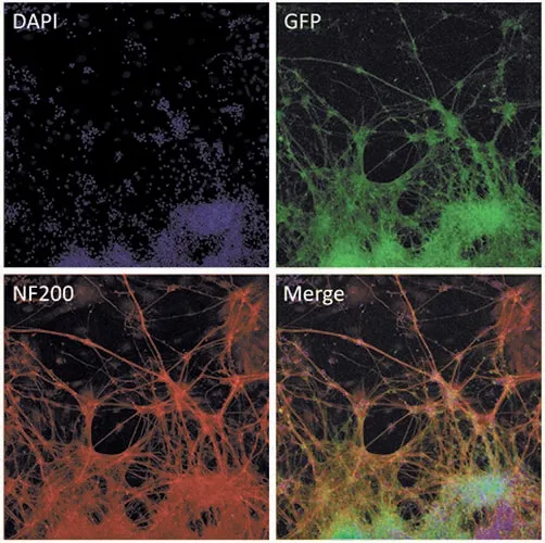 Между тем, относительно недавно стало известно, что в нейроны можно превратить не только ЭСК, но и, например, клетки кожи — фибробласты, если воздействовать на последние определенными генетическими манипуляциями. Однако как проверить, что новая клетка — это именно нейрон? Ответит как раз зеленый флуоресцентный белок, синтез которого запустится только в нейроне.