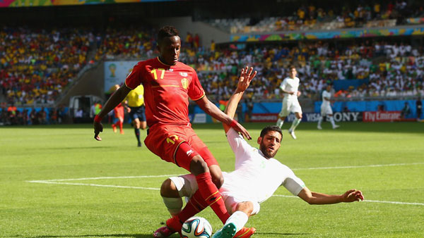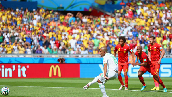 24-я мин: Пенальти в ворота сборной Бельгии. Вот это да! Поймали алжирцы соперника на контратаке! Вертонген сфолил.