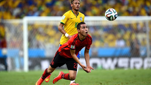 26-я мин: Спасает свою команд вратарь мексиканцев Очоа после удара Неймара головой примерно с 11 метров. Из угла вытащил мяч.