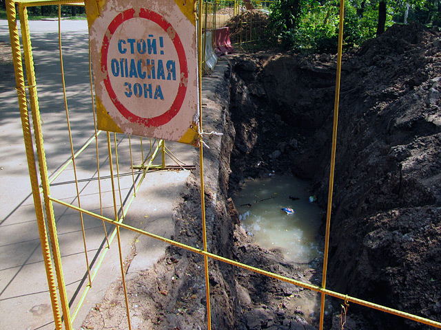 Водитель резко вывернул руль, автобус пролетел около 20 метров по газону и повис над огромной ямой на строительной площадке. В результате происшествия никто не пострадал.