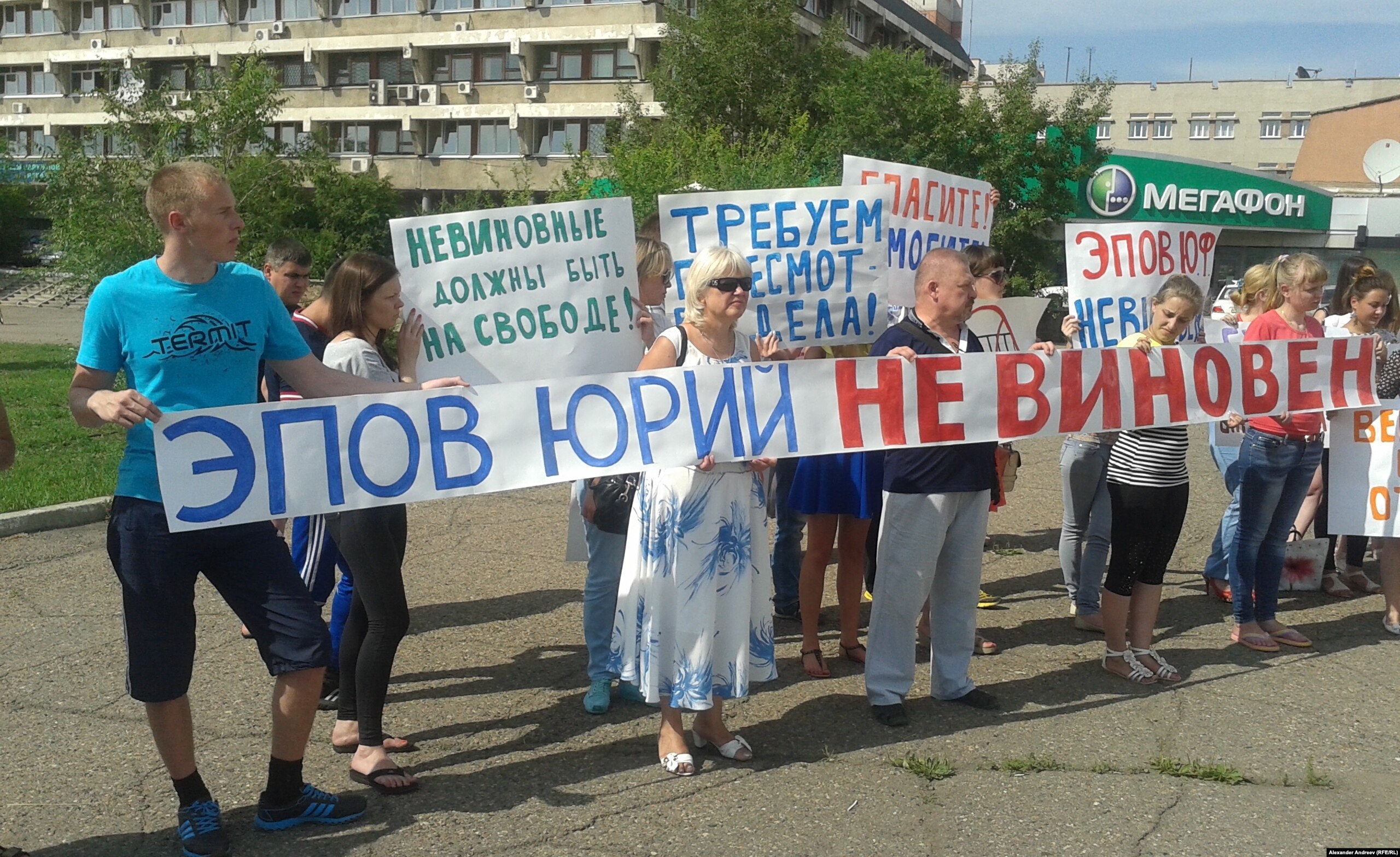 В Чите сегодня прошел пикет в защиту предпринимателя Юрия Эпова, приговоренного к семи с половиной годам лишения свободы. Участники акции, организатором которой была дочь предпринимателя Александра Эпова, заявили, что он осужден за преступление, которого не совершал.