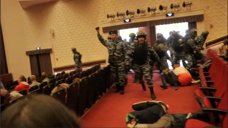 Когда видео закончилось, полиция, ОМОН, СОБР ворвались в концертный зал: «На пол все! На пол, фашисты!»