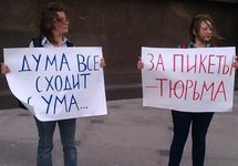 Елена Глушко и Елена Морозова на пикете у Госдумы, 01.07.2014. Фото Дмитрия Зыкова/Грани.Ру