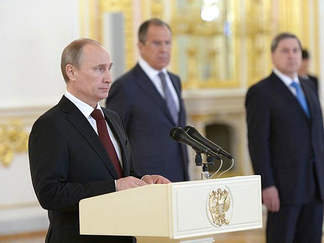 "Мы не имели права оставить крымчан и севастопольцев... Не могли допустить, чтобы был существенно ограничен наш доступ к акватории Черного моря, чтобы на крымскую землю... пришли бы войска НАТО и был кардинально изменен баланс сил в Причерноморье", - сказал президент РФ, которого цитирует ИТАР-ТАСС.