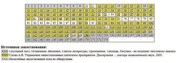 Что касается докторской диссертации самой А.В. Гуковой, то пока удалось установить, что порядка 200 страниц диссертации были ранее опубликованы в 2004 году в монографии «Управление формированием инвестиционного капитала предприятия» [11]. Это абсолютно закономерная практика публикации результатов исследований до защиты диссертации. Однако текст этой монографии, подписанной в печать 15 августа 2004 года, имеет текстовые совпадения на 52 страницах диссертации А.В. Чеметова, который защищался 5 июня 2004 года в Волгоградском госуниверситете. У А.В. Гуковой и А.В. Чеметова есть одна совместная статья, датируемая 2003 годом, которая могла бы выступить источником повторяющегося текста. Однако публикация размером один печатный лист не может объяснить таких масштабных совпадений. Установить направление движения текста по этим наблюдениям невозможно. Однако невозможно найти и другие монографии А.В. Гуковой, якобы опубликованные, по данным автореферата, до 2005 года, так как они отсутствуют в Российской государственной библиотеке. В любом случае, очевидно, что одна из двух диссертаций не написана полностью самим соискателем.Итог следующий. А.В. Гукова была научным руководителем по меньшей мере четырех диссертаций с массовыми некорректными заимствованиями, участвовала в качестве оппонента по меньшей мере на пяти нечестных защитах, текст ее докторской побывал не менее, чем в шести диссертациях. Большинство защит с участием А.В. Гуковой происходили в ГАСИСе, где ее роль, видимо, связана с использованием текста ее докторской во многих диссертациях, а также в оппонировании диссертаций с многостраничными недолжными заимствованиями. Является ли это своеобразной благодарностью за защиту ее докторской в ГАСИСе или честная, безвозмездная защита диссертаций там не практикуется вовсе? Вместе с тем, некоторые диссертации с массовыми некорректными заимствованиями, подготовленные под руководством А.В. Гуковой (В.Ю. Селезнева [12] и В.Б. Сенглеев), были защищены и в ее родном Волгоградском госуниверситете. Описанная модель сопровождения нечестных защит связана с вовлечением уже нескольких научных руководителей из разных организаций, которые выполняют разные функции по сопровождению нечестных защит как в своем, так и дружественном учреждении, в частности, используют тексты своих диссертаций для подопечных и активно выступают оппонентами для прикрытия откровенного копипаста. При этом прослеживается несколько особенностей. Во-первых, четко выделяется главная организация по организации фабрики липовых диссертаций (в данном случае ГАСИС), в работу которой привлекаются дружественные профессора и организации-сателлиты, обслуживающие фабрику по производству липовых диссертаций. Во-вторых, это преемственность: А.В. Гукова, защищавшаяся под руководством А.Ю. Егорова, прикрывает защиты его аспирантов, а И.Д. Аникина, научным консультантом которой была А.В. Гукова, сопровождает нечестные защиты аспирантов последней.