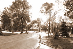 У Дома Батова. Огромный, огромный дуб. Это самое старое дерево и очень сильное, оно столько энергии отдает! Опять же, что касается парков: сквер Жертв революции полностью санирован, Кутузовский парк полностью санирован на сегодняшний день, сквер возле главпочтамта мы успели прочистить. В этом году осенью полностью санируем Детский парк. Есть огромное желание разработать (и я сейчас готовлю предложение) «Правила поведения в Детском парке». Но для того, чтобы установить правила поведения в парке, надо сделать ограду.