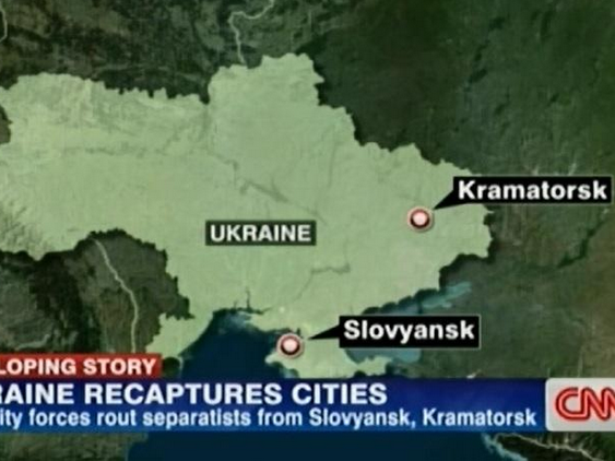Американский телеканал CNN, демонстрируя сюжет о выходе ополченцев из Славянска, показал карту, где данный город отмечен на территории Российской Федерации, а именно — в Крыму.