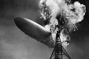 Крушение «Гинденбурга» Примерно тем же был дирижабль и для соцреализма — можно вспомнить мозаику Дейнеки «Дирижабль над Спасской башней ночью» на ст. м. «Маяковская» в Москве; ореол губительной мощи сохраняется вокруг дирижабля как архетипа.