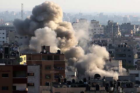 1. Smoke rises after an attack of Israeli aircraft in the southe of Gaza City on 09 July 2014.