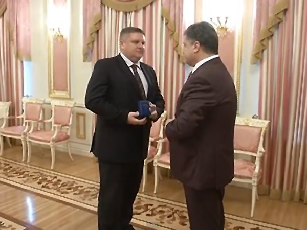 Согласно сообщению, Порошенко «высоко оценил героический поступок Андрея Крищенко, который помешал боевикам установить российский флаг над управлением МВД в Горловке, за что был награжден Орденом “За мужество” III степени». Глава государства отметил, что первоочередной задачей Андрея Крищенко на новой должности является защита местного населения и восстановление жизнедеятельности Славянска. Президент Украины заявил, что Крищенко продемонстрировал отсутствие страха, и подобрать лучшего человека «для защиты людей» трудно.