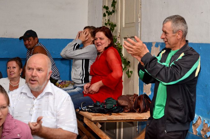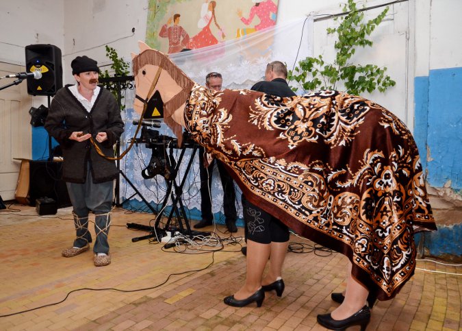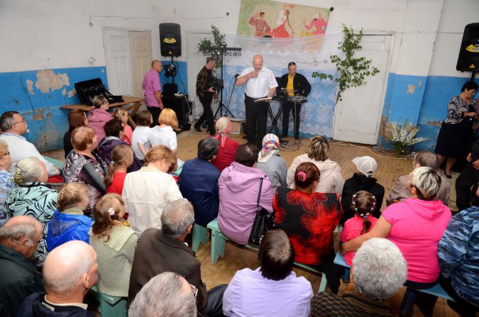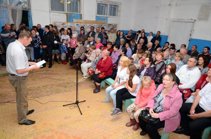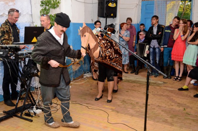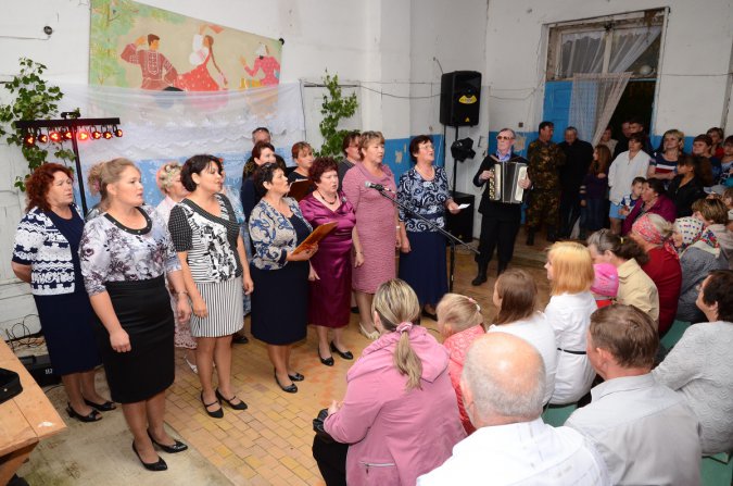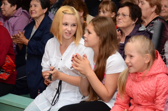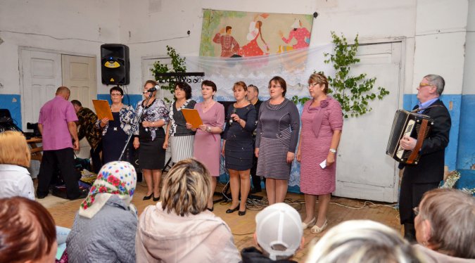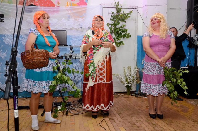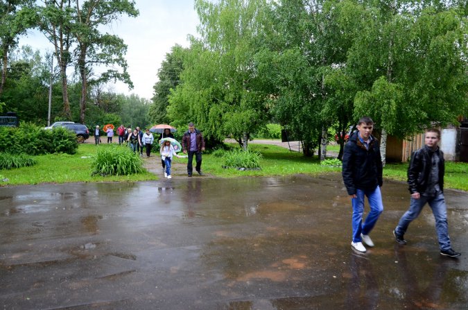 Дождь внес свои коррективы, и самодеятельным артистам пришлось выступать не на прекрасно оформленной площадке перед ДК, а в фойе, так сказать в «полевых условиях». Но выступающие своей энергией, костюмами, прекрасным выступлением так зарядили зрителей, что те благодарили их бурными аплодисментами.