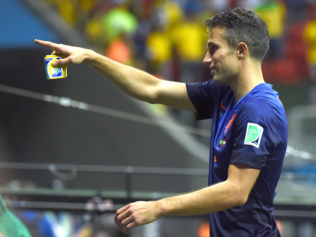 Капитан сборной Нидерландов по футболу Робин ван Перси подарил капитанскую повязку болельщику команды в оранжевой униформе после матча за бронзовые медали чемпионата мира, который состоялся в городе Бразилиа на стадионе "Манэ Гарринча".