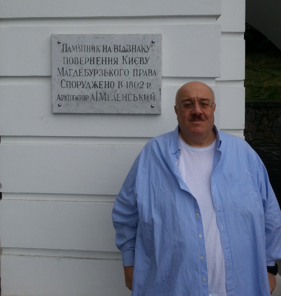 Каха Бендукидзе у памятника Магдебургскому праву в Киеве, 2014 г. Почему он сфотографировался у этого памятника — читайте ниже