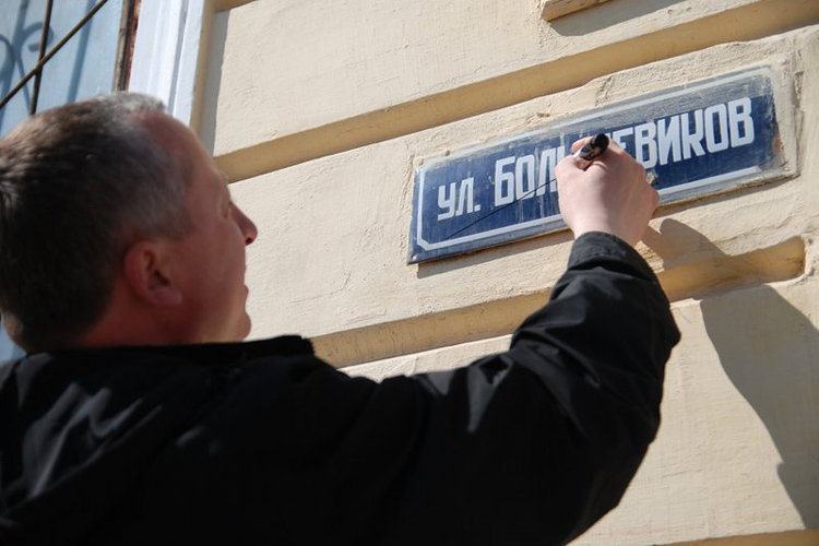 Или, например, город, который я очень люблю, — Старая Русса (Новгородская область); в романе Достоевского «Братья Карамазовы» она стала прототипом Скотопригоньевска. В городе чуть больше 200 названий улиц. Но до сих пор там восстановлено название только одной улицы — Георгиевская, по древнему храму. Город древнее Москвы — а в нем в центре до сих пор и улица Ленина, и Маркса, и Энгельса, и Клары Цеткин, и Свердлова, и пр. А в следующем году ему предстоит официально отмечать тысячелетие… И это патриотизм??