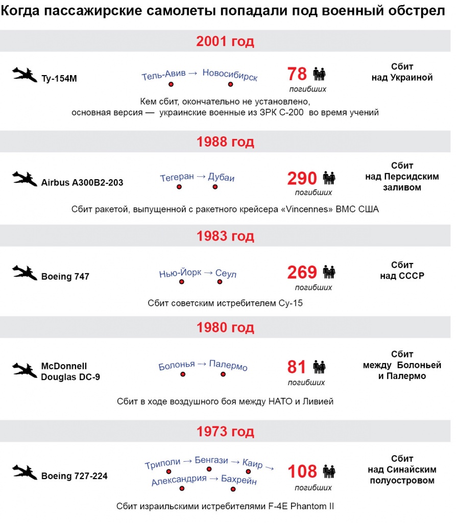 Катастрофа с малазийским Boeing 777 вошла в десятку крупнейших авиакатастроф за всю историю. Это не первый случай, когда гражданские пассажирские самолеты попадали под обстрел