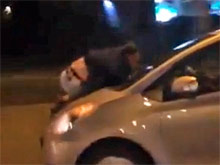 По данным агентства, 28-летняя девушка повздорила со своим мужем. Мужчина в порыве злости запрыгнул на капот машины, а водительница, испугавшись за себя и за находившегося в салоне авто ребенка, надавила на газ.