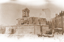 Революцию храм кое-как пережил, но в 1944 году при освобождении Пскова от немецко-фашистской оккупации в него угодила бомба. Глава и барабан плюс часть стен обрушились сразу, а звонница еще простояла несколько лет. В 1947 году ее успели обмерять аспиранты Московского архитектурного института. Их замеры очень пригодились потом при разработке проектной документации и 1967-1971 гг. (работы велись Псковской специальной научно-реставрационной производственной мастерской под руководством ст. архитектора Натальи Сергеевны Рахманиной), и в 1989-1993 гг. (кооператив «Каменное зодчество», Санкт-Петербург), и в 2013–2014 гг. (институт «Спецпроектреставрация»).