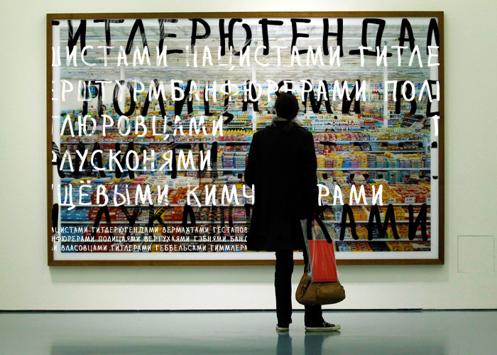 Другой похожий пример — грамматическая оппозиция множественного числа первого и второго лица «мы — вы», становящаяся вдруг под действием российских реалий аффективным противопоставлением референтных групп: «рокеры это мы / байкеры это мы / неформалы это мы / хиппи это мы / панки это мы / синяки это мы / планокуры это мы / расп*здяи это мы / уроды это мы / обсосы это мы / торчки это мы / винтовые это мы / динозавры это мы» vs. «красивые это вы / здоровые это вы / счастливые это вы / сексуальные это вы / успешные это вы / перспективные это вы / богатые это вы / известные это вы / талантливые это вы / креативные это вы / свободные это вы / раскованные это вы». Пример третий — разрастание пары «прогрессивный — консервативный» с попутным редуцированием этого важнейшего для европейской традиции деления к способам коитуса: «энди уорхол ё*ся в жопу у вас на глазах / юкио мисима ё*ся в жопу у вас на глазах / микеланджело буонарроти ё*ся в жопу у вас на глазах / леонардо да винчи ё*ся в жопу у вас на глазах / пьер паоло пазолини ё*ся в жопу у вас на глазах / лукино висконти ё*ся в жопу у вас на глазах / педро альмодовар ё*ся в жопу у вас на глазах / сергей параджанов ё*ся в жопу у вас на глазах / дэвид боуи ё*ся в жопу у вас на глазах» vs. «а вы все остались такими же / у*бищными натуралами / дебильными гомофобами / быдлом беспросветным / отсталыми вонючими троглодитами / фашистами нацистами гитлерюгендами вермахтами гестаповцами эсэсовцами оберштурмбаннфюрерами полицаями вертухаями гэбнями бандеровцами петлюровцами власовцами гитлерами геббельсами гиммлерами муссолинями берлусконями путиными лукашенками януковичами туркменбашами сталиными хрущёвыми кимченырами».