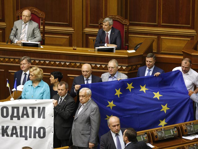 В четверг также стало известно, что фракции "Свобода" и "УДАР", а также 15 внефракционных депутатов заявили о выходе из правящей коалиции в Раде, вызвав крайнее недовольство спикера Александра Турчинова. Председатель Верховной рады заявил, что "депутаты могли бы сначала проголосовать за правительственные изменения в бюджет и Налоговый кодекс, а уже потом делать объявления", сообщает ИТАР-ТАСС.