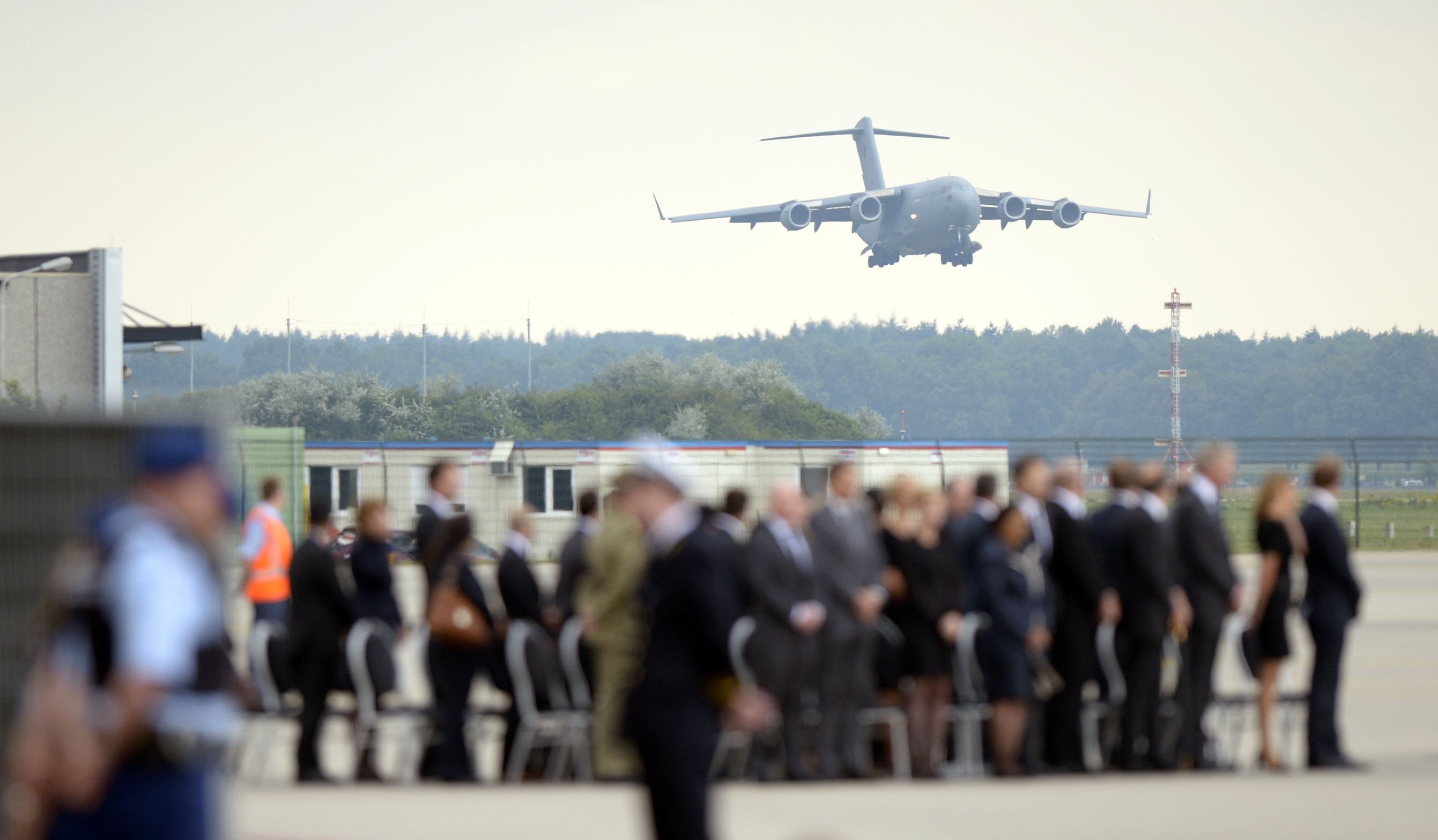 Тем временем, судмедэксперты уже в среду вечером приступили к работе над опознанием останков погибших. Начиная со среды, каждый день два военных самолета привозят из Харькова на аэродром Эйндховена по несколько десятков гробов. Затем на взлетном поле аэродрома повторяется одна и та же траурная церемония: в абсолютной тишине, которую нарушает лишь металлический стук веревок спущенных флагов о флагштоки, в присутствии родственников погибших (которых не снимают телекамеры) и высокопоставленных нидерландских чиновников и гостей из стран, чьи граждане были пассажирами малайзийского "Боинга", служащие нидерландской королевской жандармерии медленно, один за другим переносят деревянные гробы из самолетов в похоронные автомашины. После этого траурный кортеж из похоронных машин отправляется из Эйндховена на север, в город Хильверсум, на территорию военной казармы, где судмедэксперты проводят опознание. И в среду, и в четверг, и в пятницу тысячи и тысячи людей выстраивались вдоль шоссе, чтобы встретить гробы с останками пассажиров рейса MH17. С переполненных людьми виадуков над магистралью то и дело летели цветы. В субботу в Нидерланды привезут последние из обнаруженных на настоящее время останков погибших. Всего за четыре дня в Хильверсум перевезли 227 гробов. Есть предположение, что на месте крушения еще остаются человеческие останки. Всего на борту разбившегося самолета было 298 человек, из них 194 голландских подданных. Нидерланды взяли на себя работу по опознанию всех пассажиров "Боинга", а также возглавили Международную следственную группу по расследованию обстоятельств крушения.