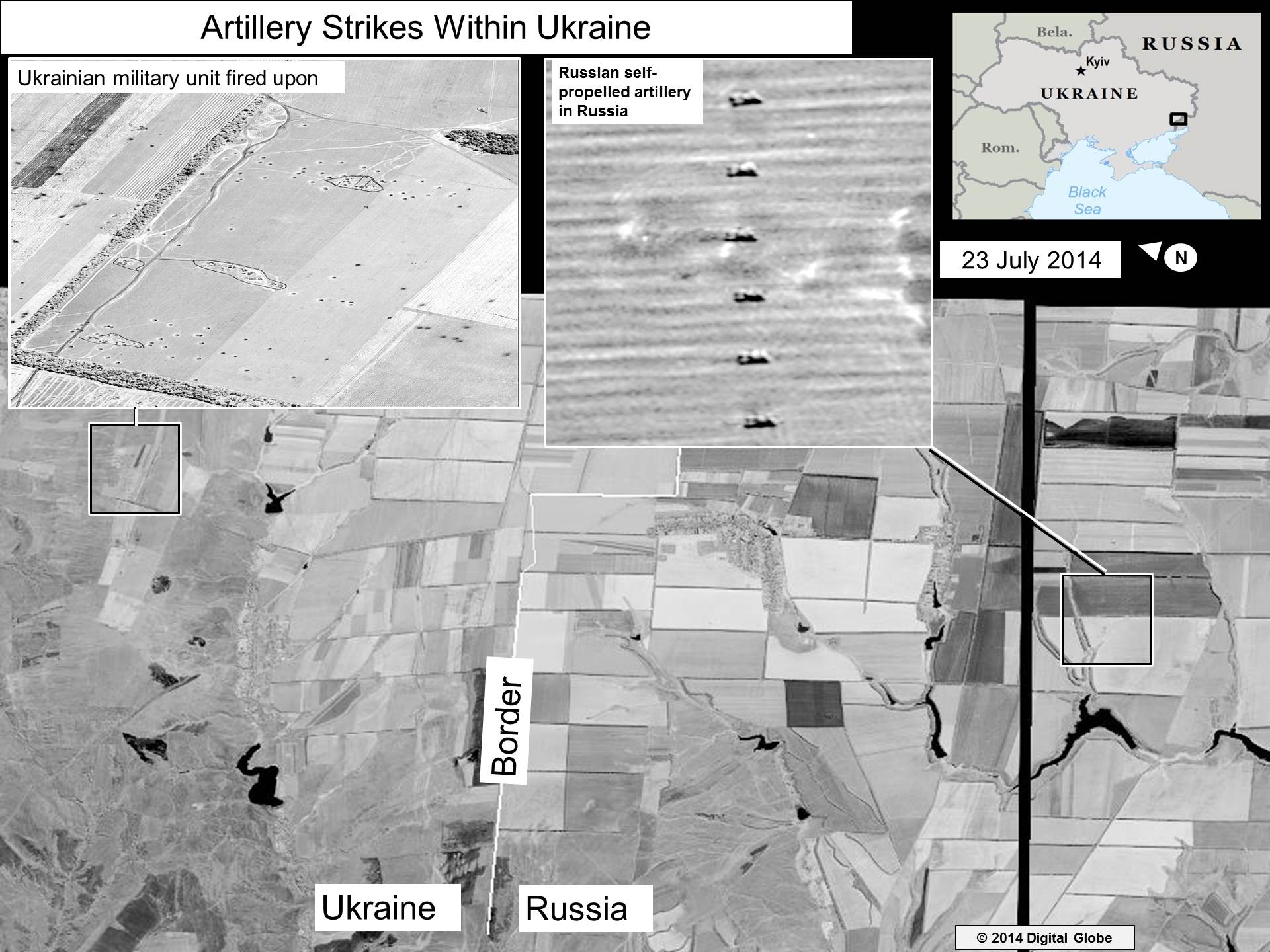 Несколько дней назад государственный департамент США обнародовал спутниковые фотографии, которые, по данным американской разведки, свидетельствуют об обстрелах позиций украинских войск с территории России.