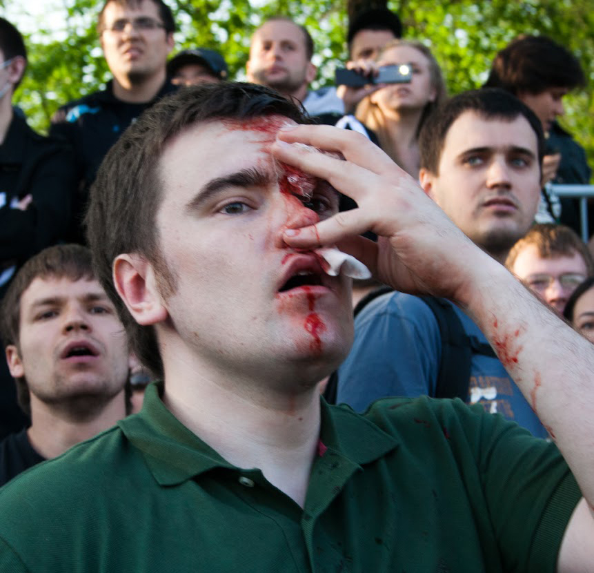 | Алексей Гаскаров после того, как его избил ОМОН. Болотная площадь, 6 мая 2012 г. |
