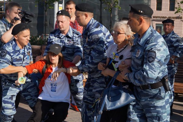27 июля полиция задержала на Пушкинской площади шесть человек, некоторые из которых были одеты в цвета украинского флага, что полиция посчитала вызывающей одеждой. ОВД-Инфо публикует рассказ одной из задержанных, Веры Лаврешиной, на которую был оформлен протокол о мелком хулиганстве.