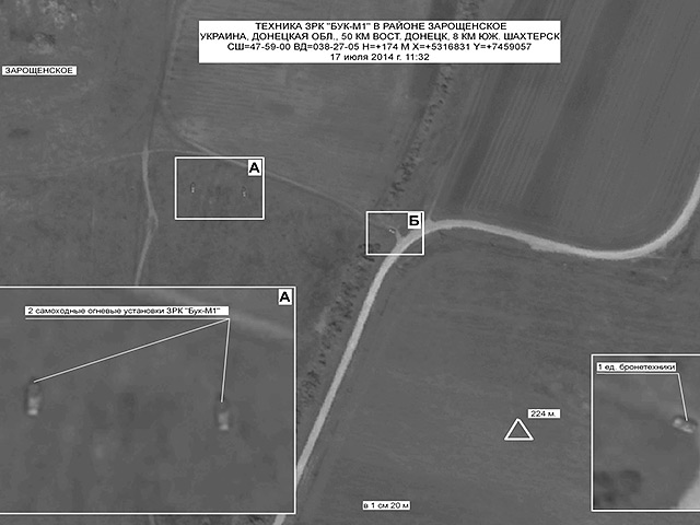 "В обозначенное на снимках время над зоной катастрофы находился американский спутник оптико-электронной разведки типа KeyHole. Таким образом, источник получения фотоосновы для дальнейшей обработки СБУ не должен вызывать ни у кого сомнений", - полагают в Минобороны.