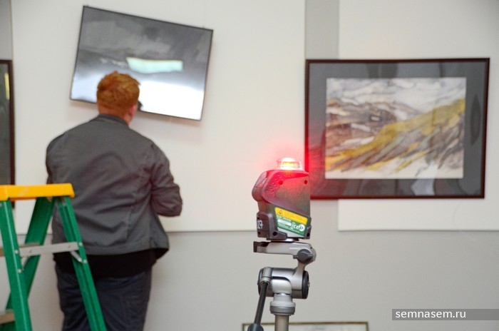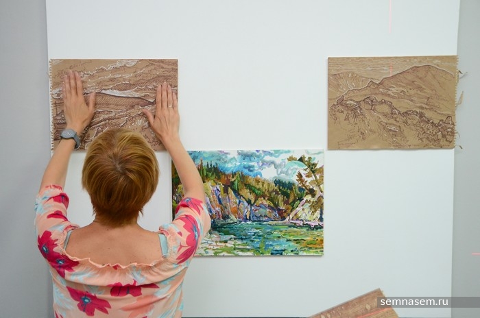 Развеска картин и фотографий участников плэнера, оформление выставки в большом зале центра «Югор» начались днем в субботу. В основном этим занимаются три человека. Перед ними непростая задача — расположить на стенах несколько десятков работ, выполненных в разных техниках. Это акварель, пастель, карандаши. Классические живописные техники: холст, масло и картон, масло. А еще коллажи, объемные фотографии, рельефная живопись. Каждой работе необходимо подобрать соответствующее место, чтобы в зале появилась логика внутреннего рассказа.