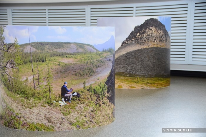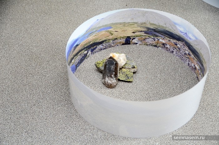 Елена Шубницына сделал традиционные пейзажные фото. Она снимала деревья, растения, горы. Фотографии наклеили на цилиндрические формы, благодаря чему получился эффект панорамирования. «Кольца Урала» — уточняют название присутствующие.