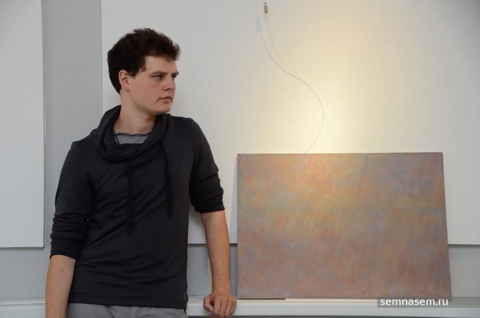 Чуть поодаль стоит художник Иван Новиков, который уже нашел место для своих работ и сейчас уточняет последние детали. Он коротко рассказывает о себе: закончил Суриковский институт в Москве (МГАХИ имени В. И. Сурикова), где учился академической живописи. Но на пленэре решил сделать что-то «нефигуративное».