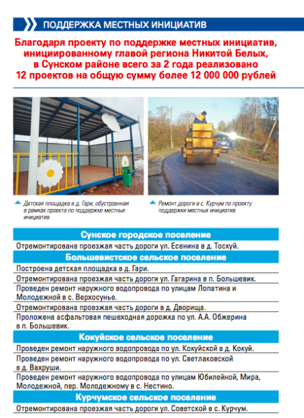 В конце визита встретился с жителями района, ответил на их вопросы. Так, рассказал о том, что в Суне уже запланировано строительство физкультурно-оздоровительного комплекса. Оно начнется в 2016-2017 году. А в районе в самое ближайшее время будет возведено 2 фельдшерско-акушерских пункта.
